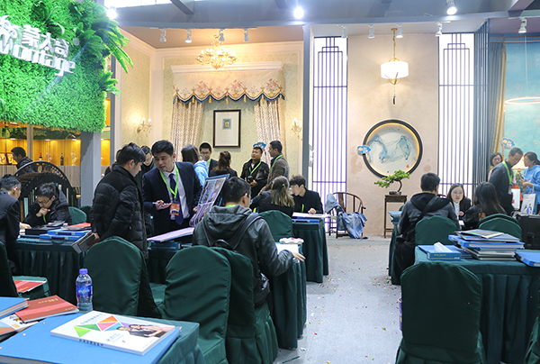 展廳墻面上展示著蒙太奇產(chǎn)品,有綠色的硅藻泥,有優(yōu)雅的手工壁紙,有質(zhì)感的藝術(shù)涂料......產(chǎn)品在燈光的照射下散發(fā)出不同的味道,讓您一眼就喜歡上它。輕奢風(fēng)格、中式風(fēng)格、美式風(fēng)格區(qū)域的劃分,讓參展者直觀的了解蒙太奇產(chǎn)品特點和裝飾性,近距離感受蒙太奇產(chǎn)品帶來的視覺盛宴,感受蒙太奇多元化產(chǎn)品的魅力。
